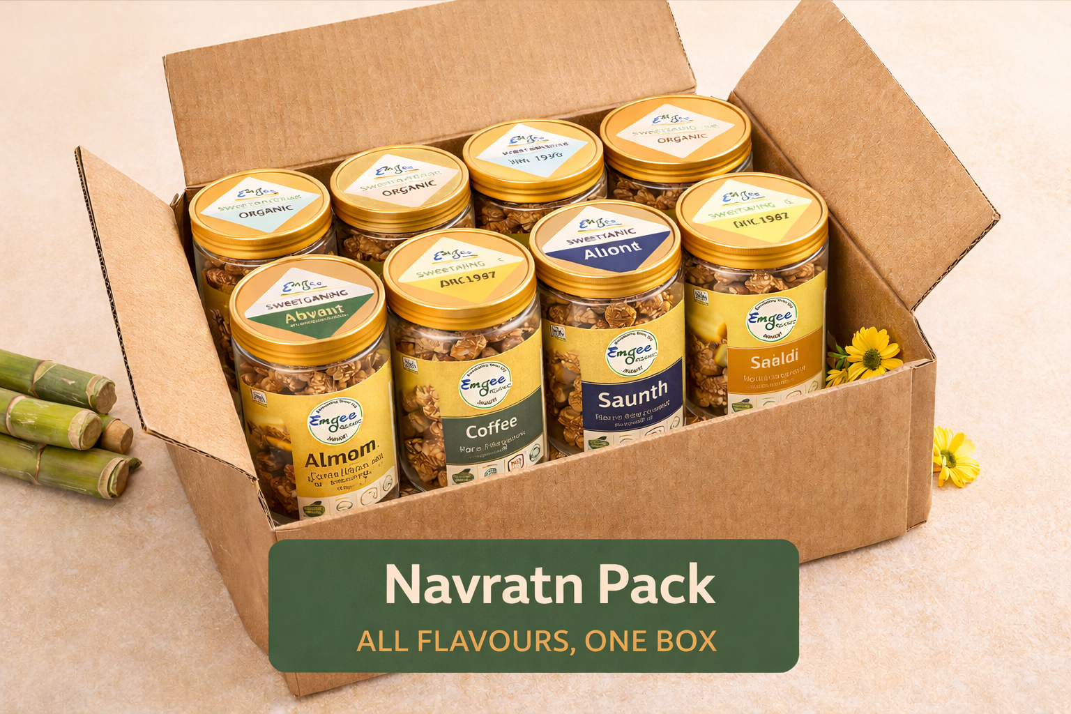 Try our Navratan Pack, a curated selection of multiple jaggery flavours in one premium box.